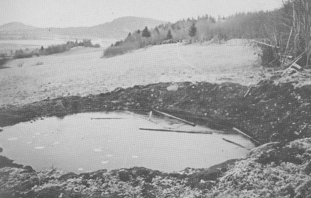 Bombekrater på Skjefte: Det ble et imponerende hull etter at tyskerne sprengte blindgjengeren. Foto: Sigurd Hegdahl/ Foreningen Gamle Steinkjer.